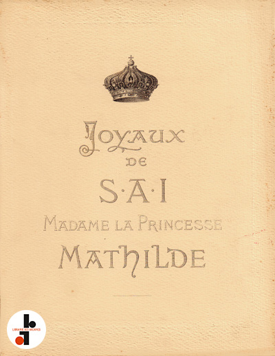 Catalogue des joyaux, colliers de perles, parures en perles, brillants anciens, pierre de couleur, horloges ayant appartenu à Son Altesse Impériale Madame La Princesse Mathilde